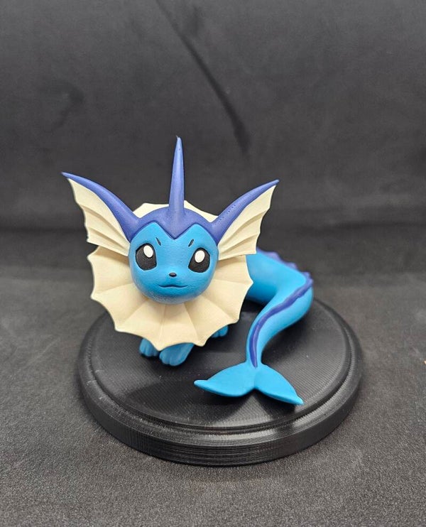 Deze Vaporeons zijn ongeveer 9 cm hoog en zij geprint met een resin printer en met de hand geverfd met acrylverf